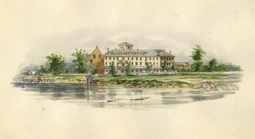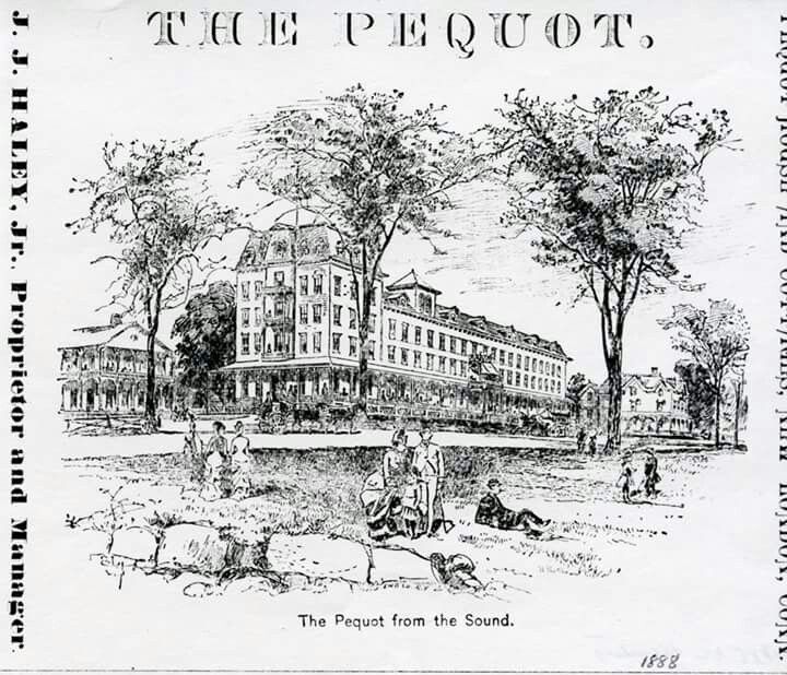 Beginning in 1850, with the opening of the luxurious Pequot House hotel at the harbor’s mouth, New London emerged as one of the preeminent summer playgrounds of the nation’s social elite. An August 3, 1855 article in the New York Times proclaimed, “New London is fast becoming popular as a summer resort and will, in a few years, no doubt rival some of the celebrated places such as Newport, Cape May, etc.” The article attributed this rapid rise in New London’s popularity to the Pequot House, which it described as, “exceedingly convenient, airy and comfortable, and withal well kept; so that guests who visit it once return again almost invariably the succeeding season.” The waterfront location allowed guests to arrive directly at its dock via private yacht or steamship. Links to the downtown New London train station were also available via carriage and later by auto and bus. The resort counted many New York millionaires as well as presidents Ulysses S. Grant and Chester A. Arthur and their families among its high profile guests.